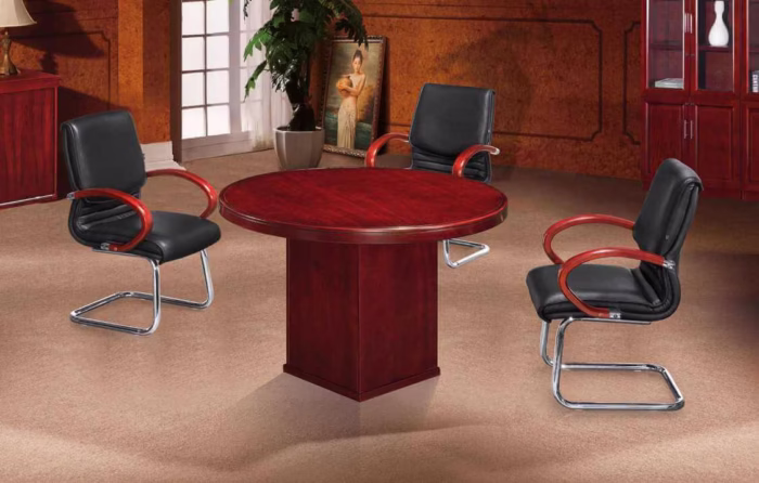 CONFERENCE TABLE The round conference table is made from a mahogany veneer finish and its ideally for 4 people. Dimensions: 1350L*1350D*800H z/ 1200Dia x 800H