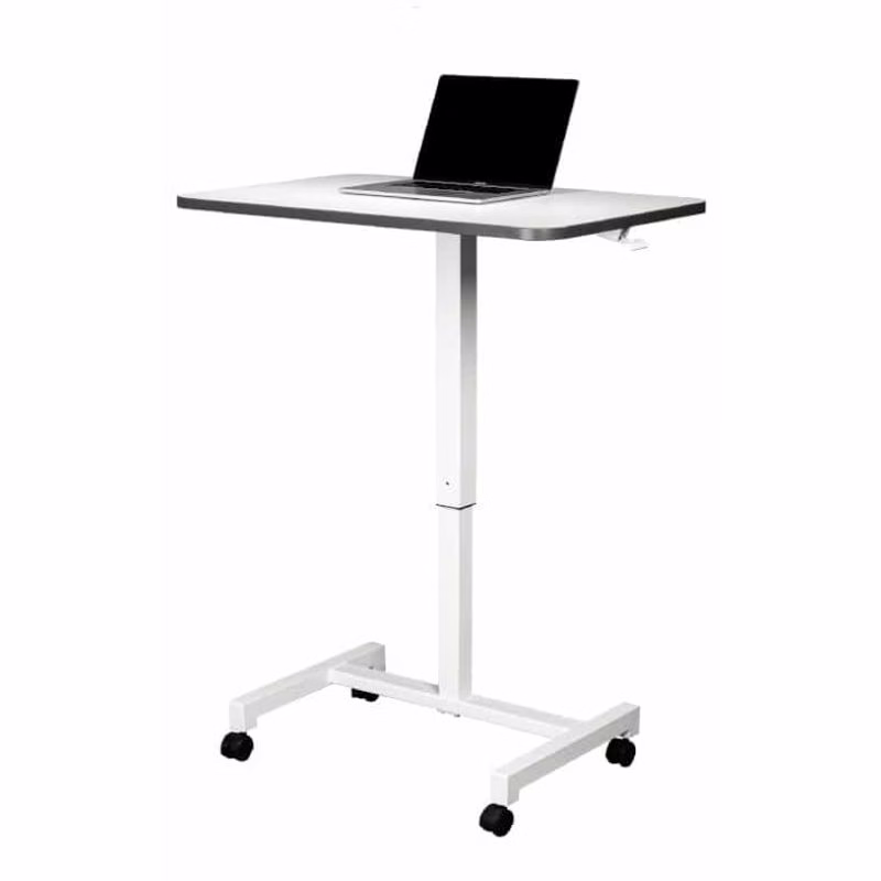 White frame with easy-lift one-handed operation makes this utility table ideal in any office.