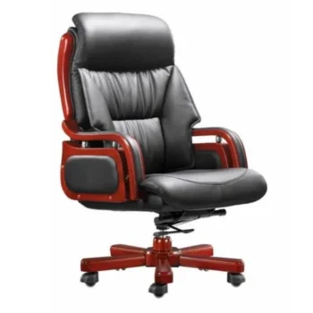 Genuine Leather High Back with Wooden Frame in Royal mahogany and 5 star Wooden Veneer frame covered
