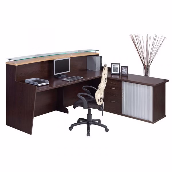Monaco reception counter with roller door padenza in three Drawer and deep Filer.