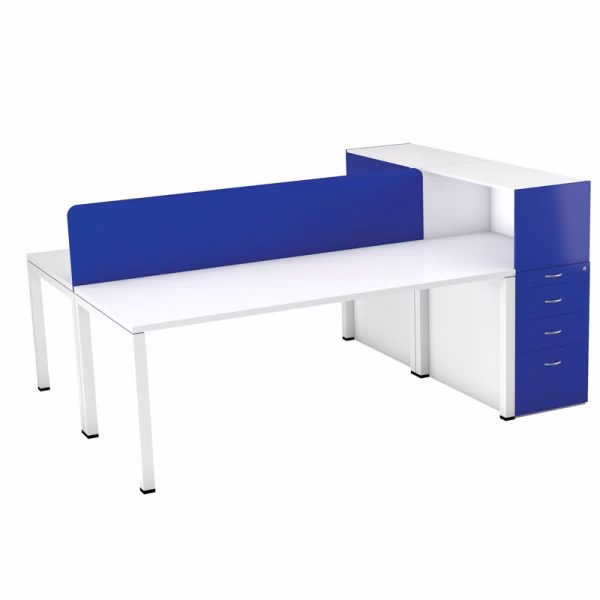 2 way workbench with tall-boy cabinets, available in different colour designed in two-tone with screen partitioning.