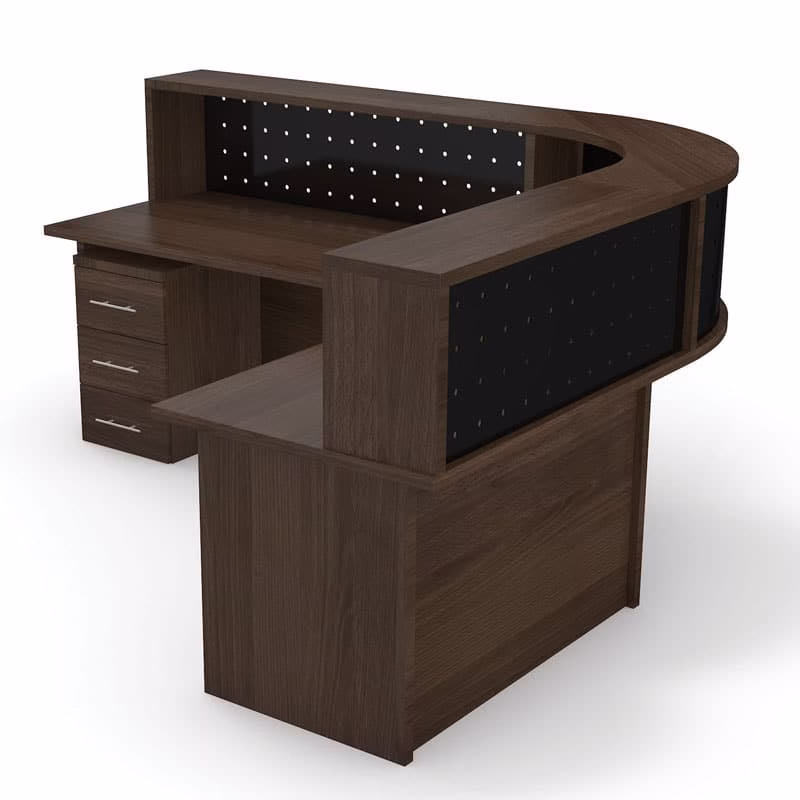 The New Reception Range units are made in 2100, 1800 and 1600mm units, which append to one another with a corner link. The unit is in 11 distinctive melamine colurs with silver or dark punctured panels. Pedestals are discretion