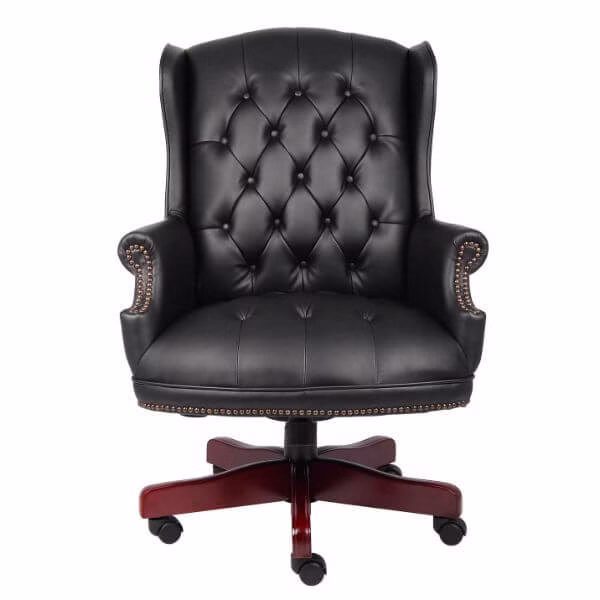 Rotatry Genune leather Arm Chair Black colour genuine leather high back chair with mahogany wooden base