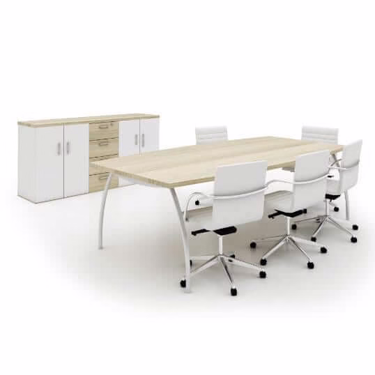Solaire meeting room table planned with twisted legs and made in Harvard Cherry, Coimbra or Summer oak as standard hues.