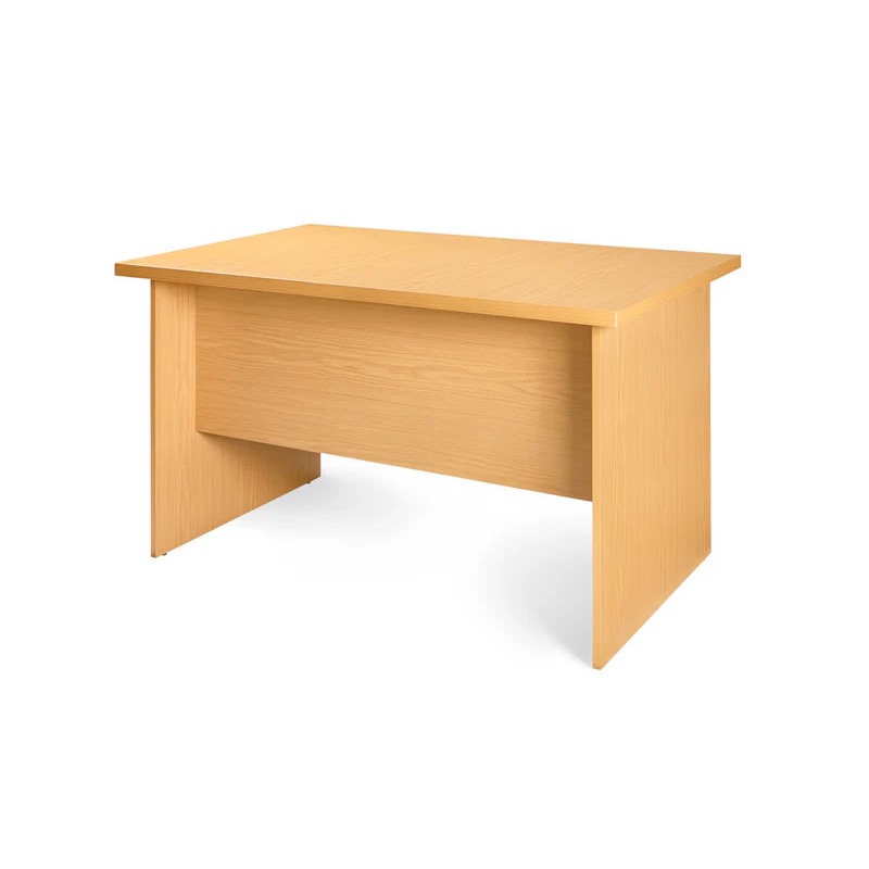 Melamine Desk Shell with panel legs and modesty panel, 32mm built up top, 4 glides under panel legs for stability and ease of shifting, with matching edging