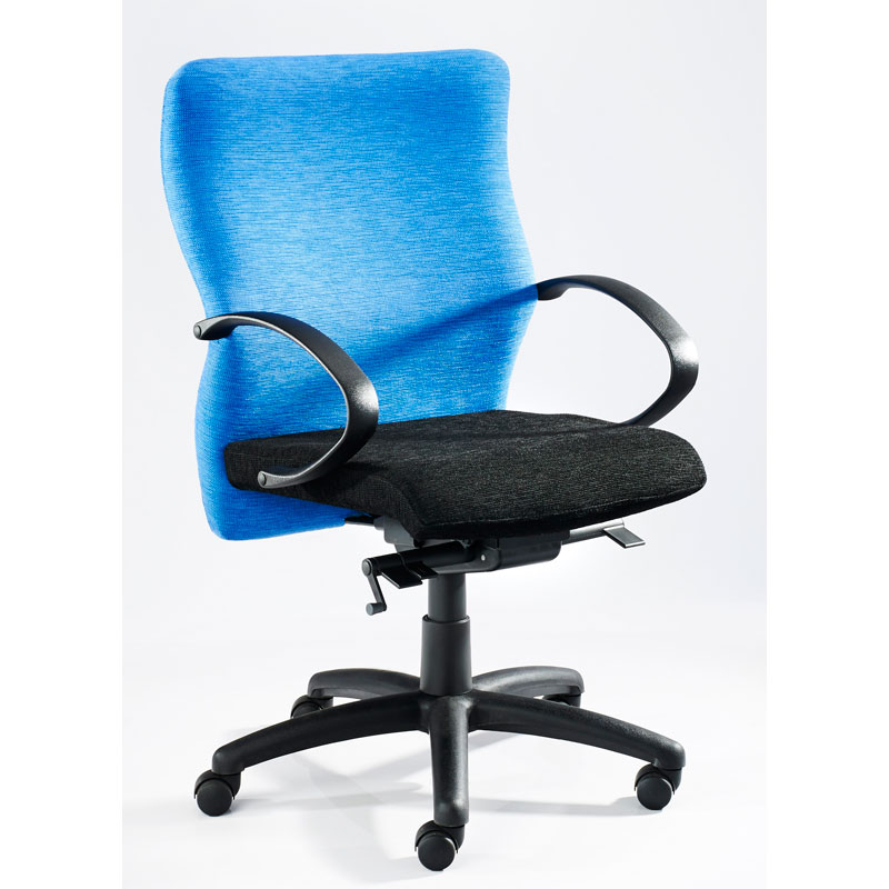 This is a brand new local release chair range that has been designed for heavy-duty use on a 24 hour per day maximum 150kg weight capacity. This chair is available in high back and medium back and can be upholstered in any colour material. The standard features are donati synchro mechanism with heavy-duty gas height adjustment, heavy-duty inner shell and heavy-duty foam on the back and seat as well as 20 wheel castors. The optional arms are L-shaped integral or 4D height adjustable arms. Priced with black boomerang arms.