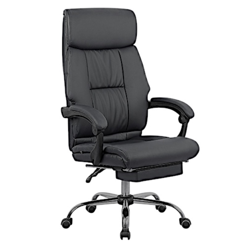 The Lazy Recliner Office Chair in black PU Leather is a large, comfortable office chair designed for extended use with several ergonomic and functional features: