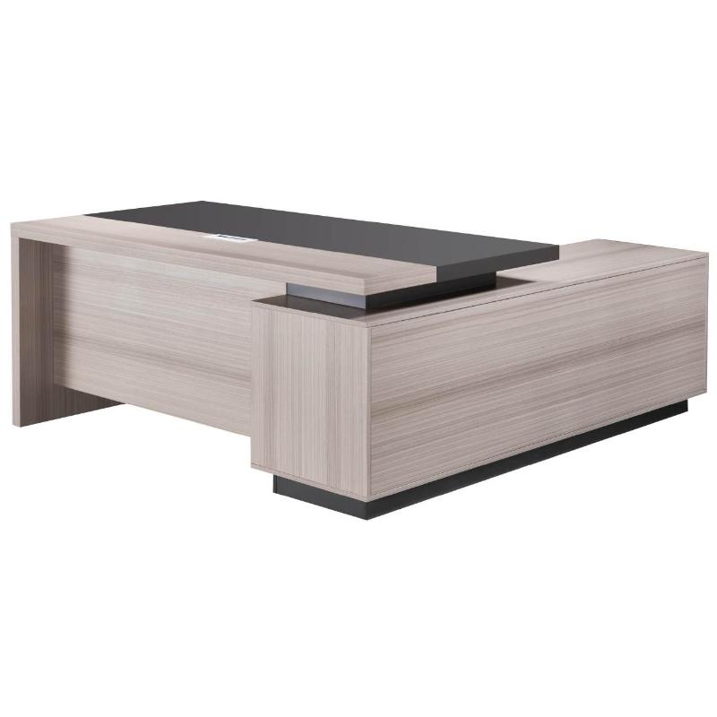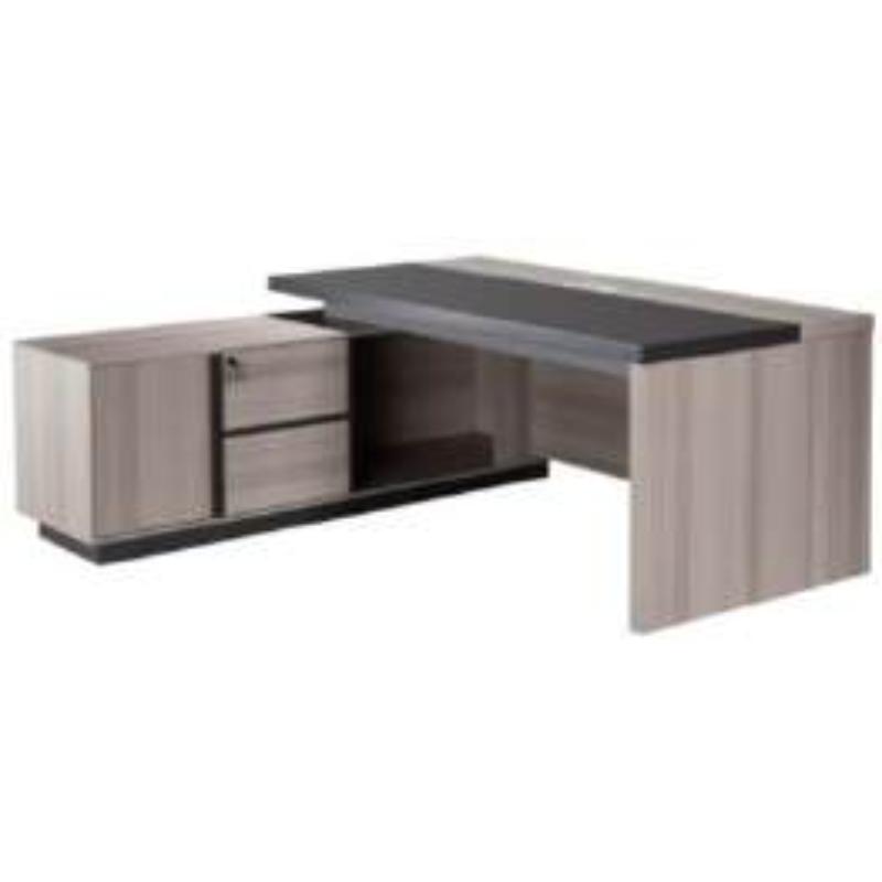 Crafted with a 50mm-thick top and solid panel legs, the Two Tone Desk ensures long-lasting strength and stability, while its dual-tone light oak and grey finish adds a contemporary flair that enhances any office interior. The spacious L-shaped layout provides generous room for multitasking, meetings, or computer work, and the fixed credenza offers ample storage for files, stationery, and other essentials—keeping your workspace organized and clutter-free.