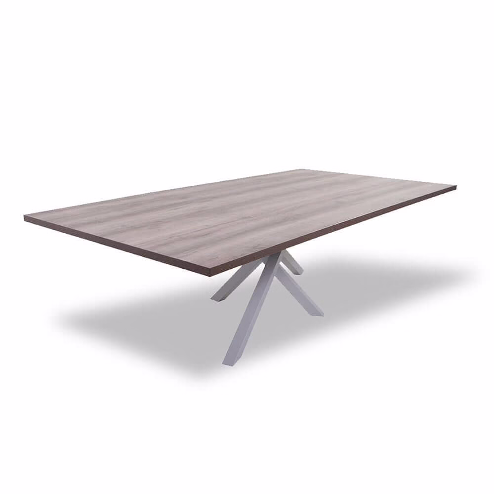 The Venus boardroom table 3m is made out of 2 pieces with a 32mm top and flat pvc edging in camden melamine on 50 x 50mm black powder coated steel legs.