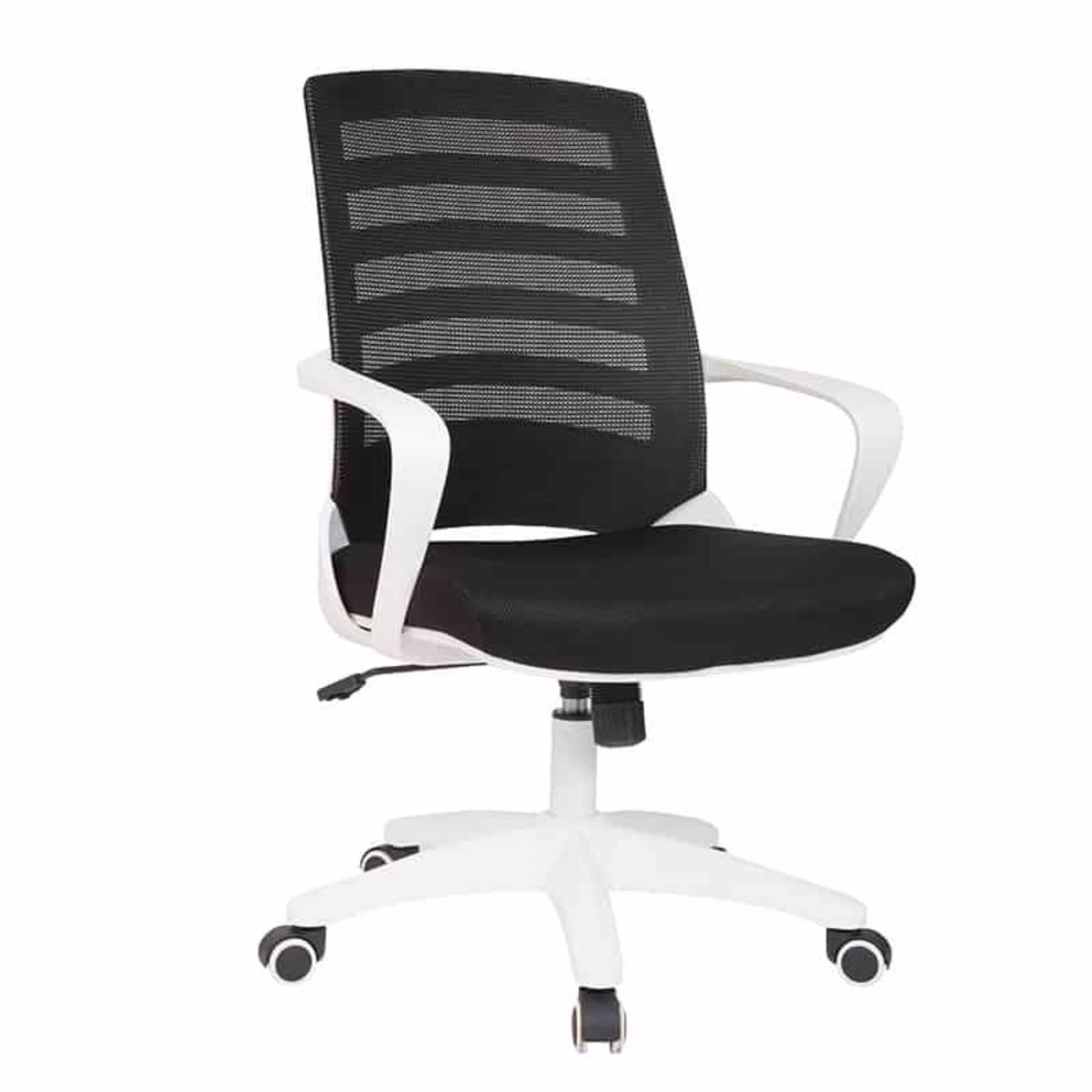 Black netting back and seat with a black frame. Gas height adjustment.